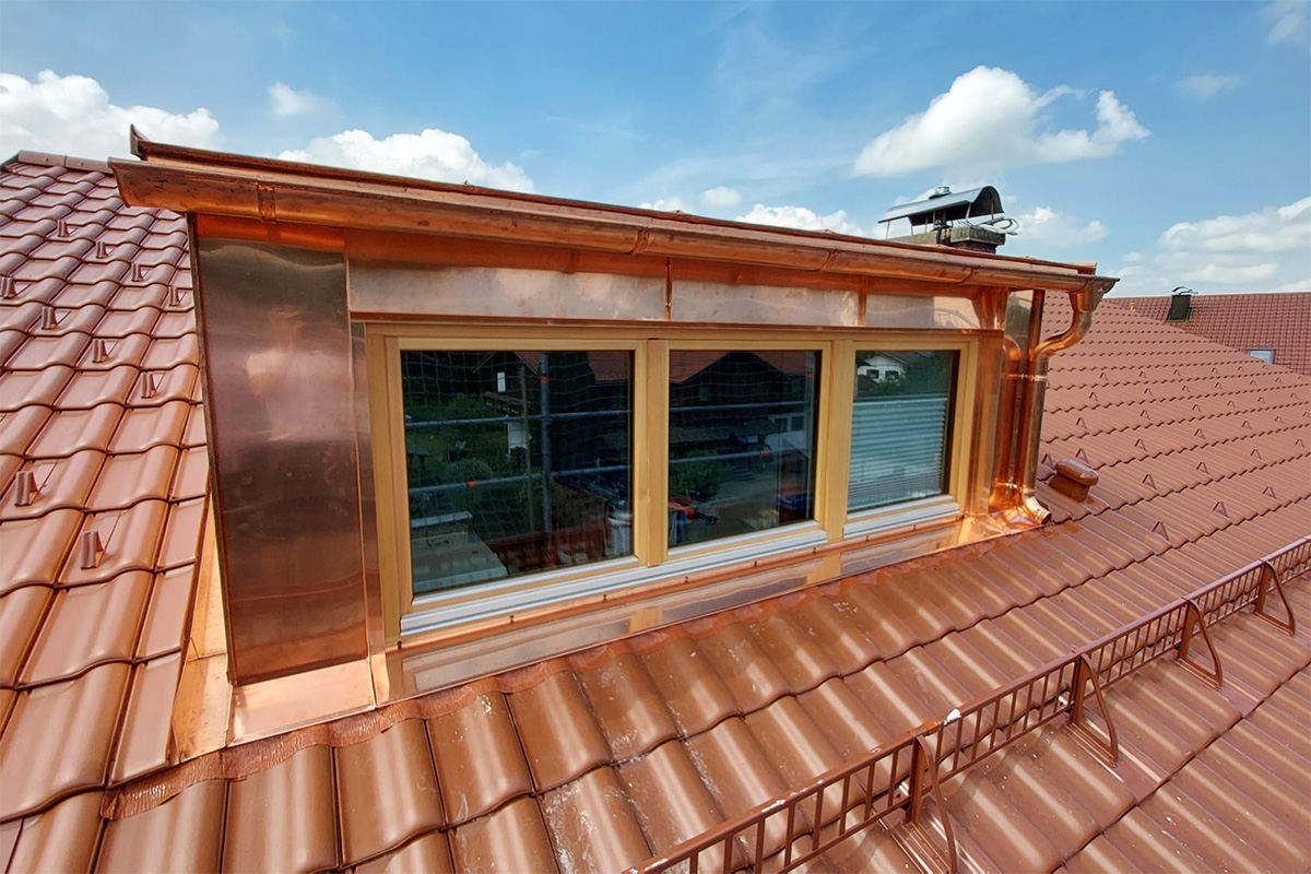 Die Spenglerei umfasst die fachgerechte Verarbeitung von Metallen zu funktionalen und ästhetisch ansprechenden Bauteilen am Gebäude. Zu unseren Leistungen zählen unter anderem Dachentwässerungen, Blechdeckungen sowie Fassadenverkleidungen. Als erfahrener Spenglerbetrieb fertigen und montieren wir maßgeschneiderte Metalllösungen, die sowohl langlebig als auch optisch überzeugend sind.